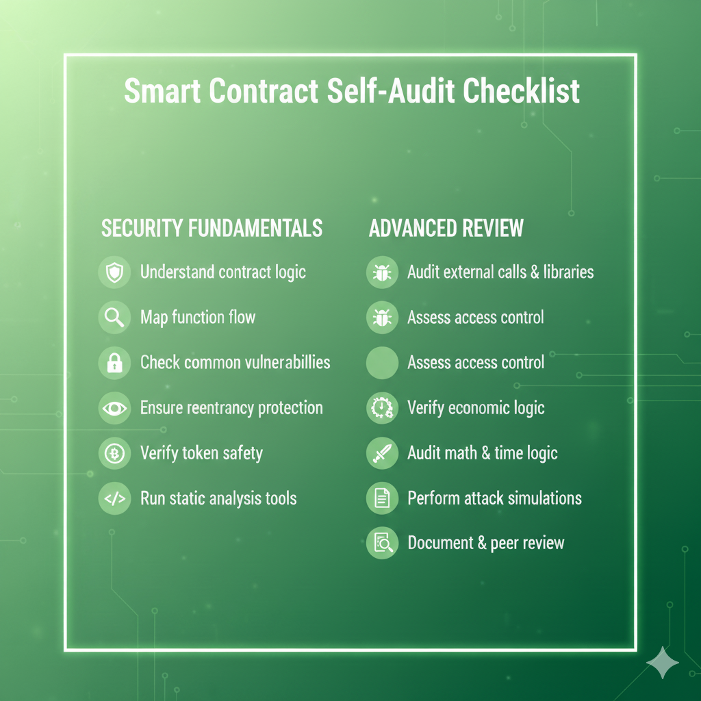 Don’t Wait For Disaster—Act Now!Deploying an unaudited smart contract is like launching a rocket with a paper fuse. The risk is simply too high. This self-audit checklist isn’t just a list of steps; it’s a mindset. Adopt this rigorous but vital and necessary approach, and you’ll dramatically reduce your attack surface, safeguard your users’ funds, and cement your reputation as a builder of secure, reliable Web3 infrastructure. Ready to stop the hackers dead in their tracks? Start checking off this list today!